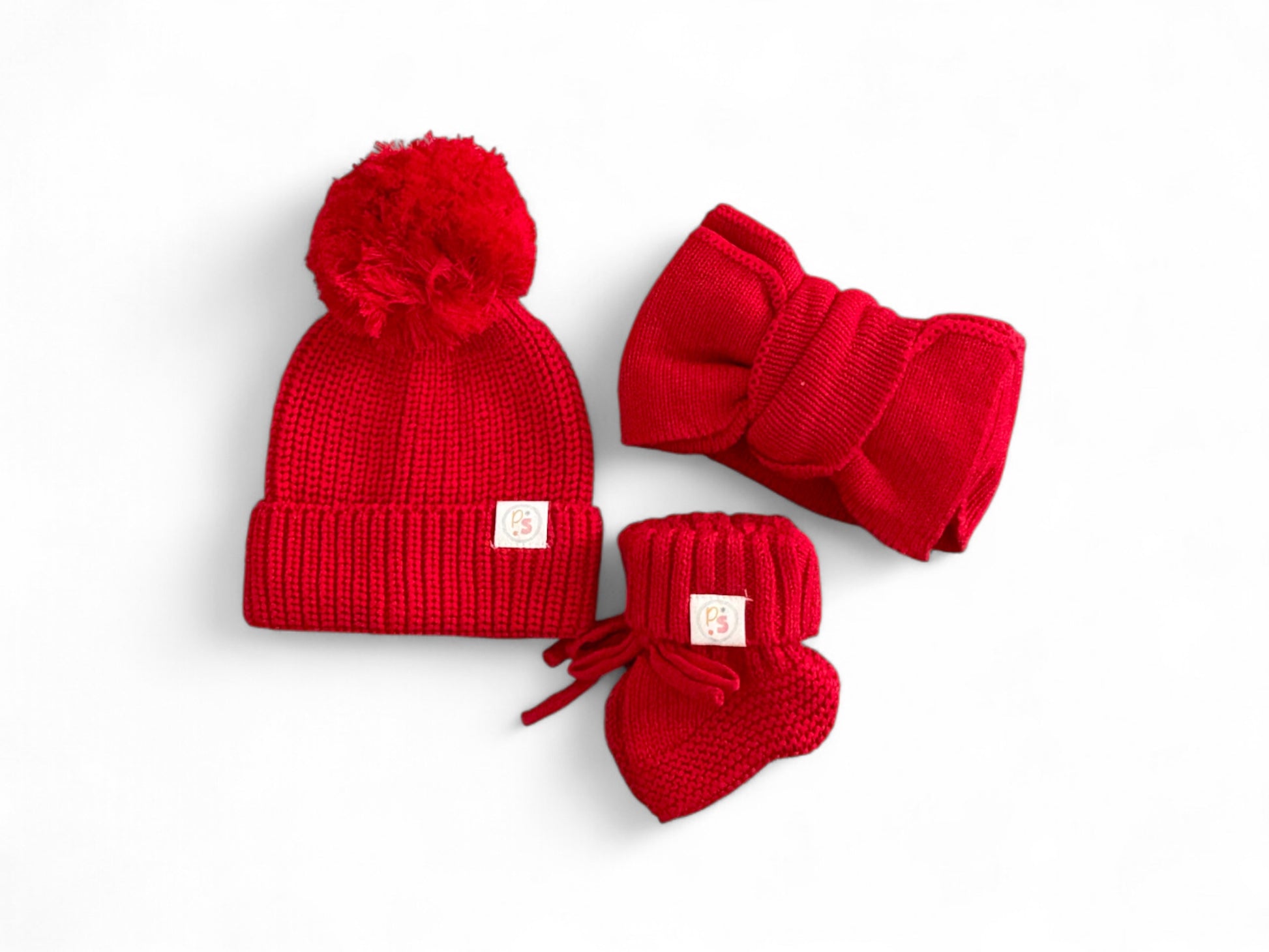 ✔ Matching knit booties with tie closure