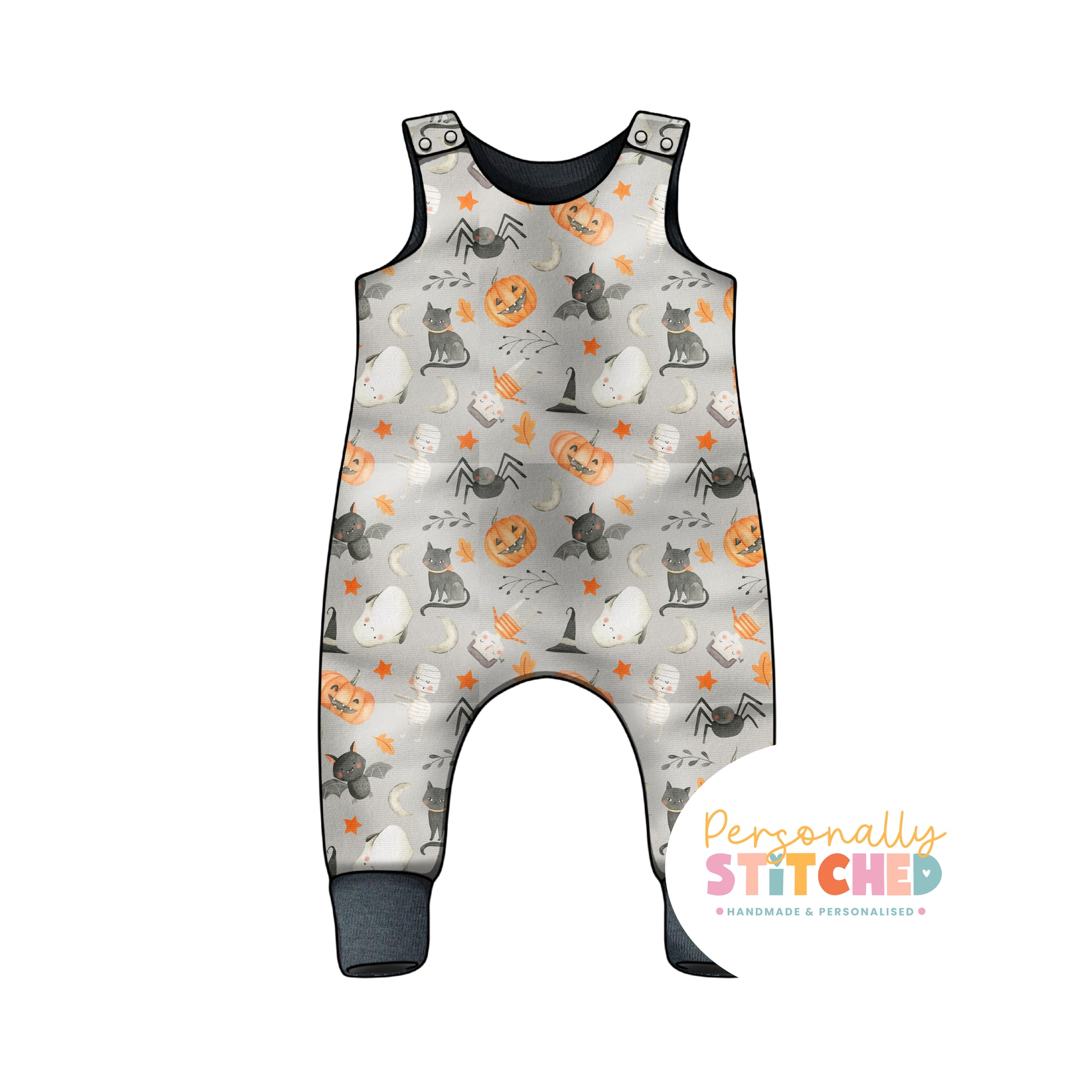Halloween Print Organic Cotton Jersey Dungaree Romper